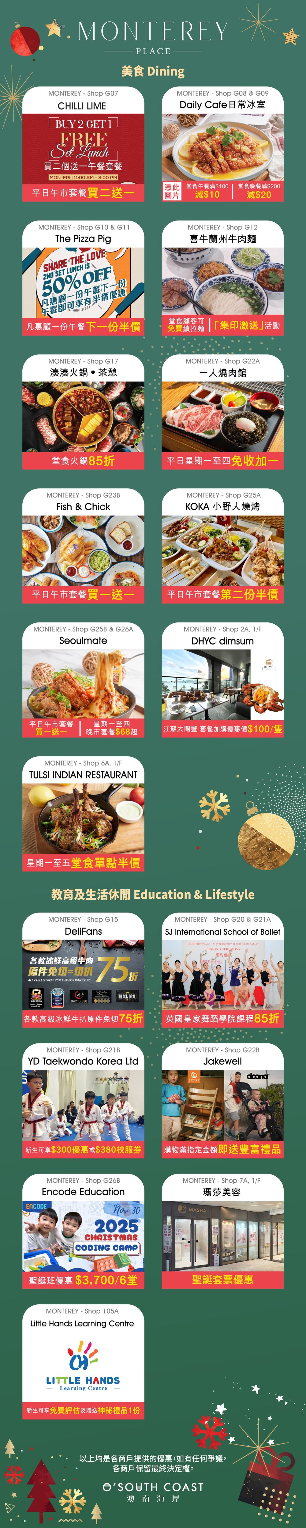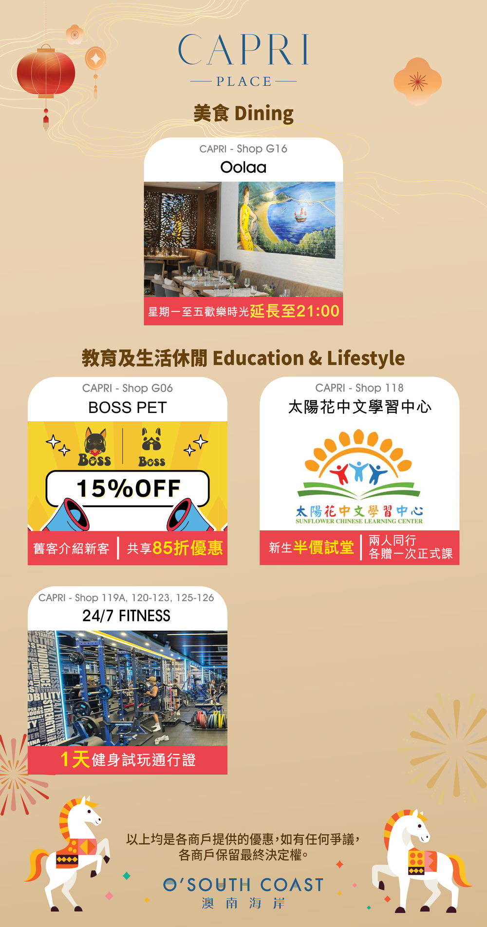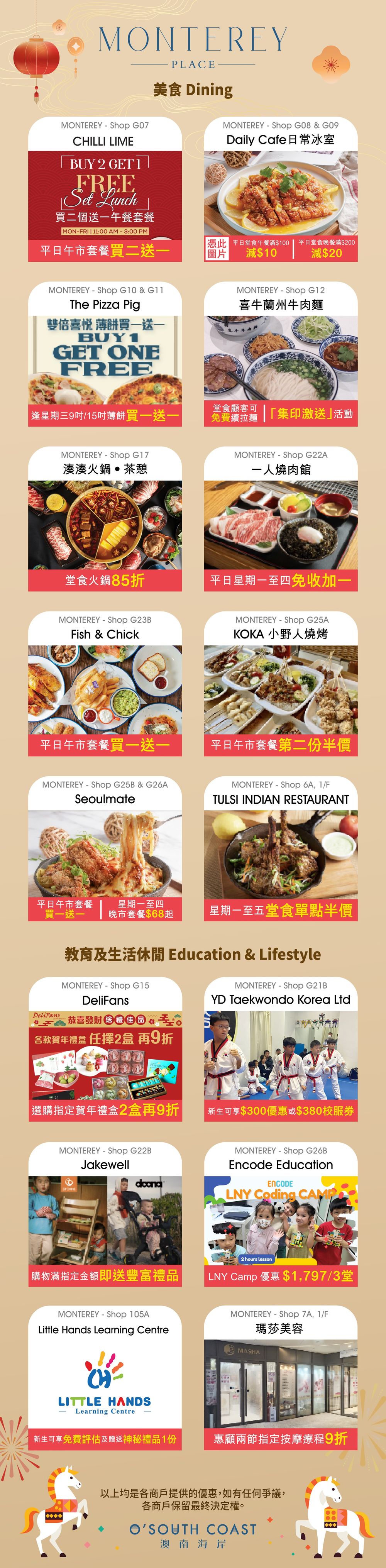 ***所有優惠受條款及細則約束,詳情請向商戶查詢。優惠由各商戶提供並擁有最終決定權。享用優惠前,請先向職員查詢及出示此信息。優惠如有更改,恕不另行通知。***