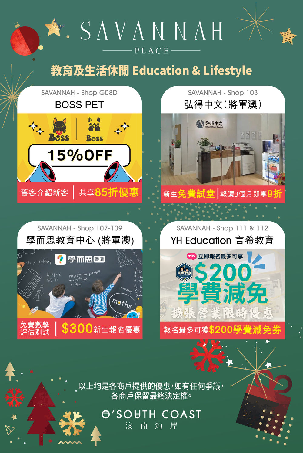 地址: 澳南海岸Savannah Place地下G08D號舖