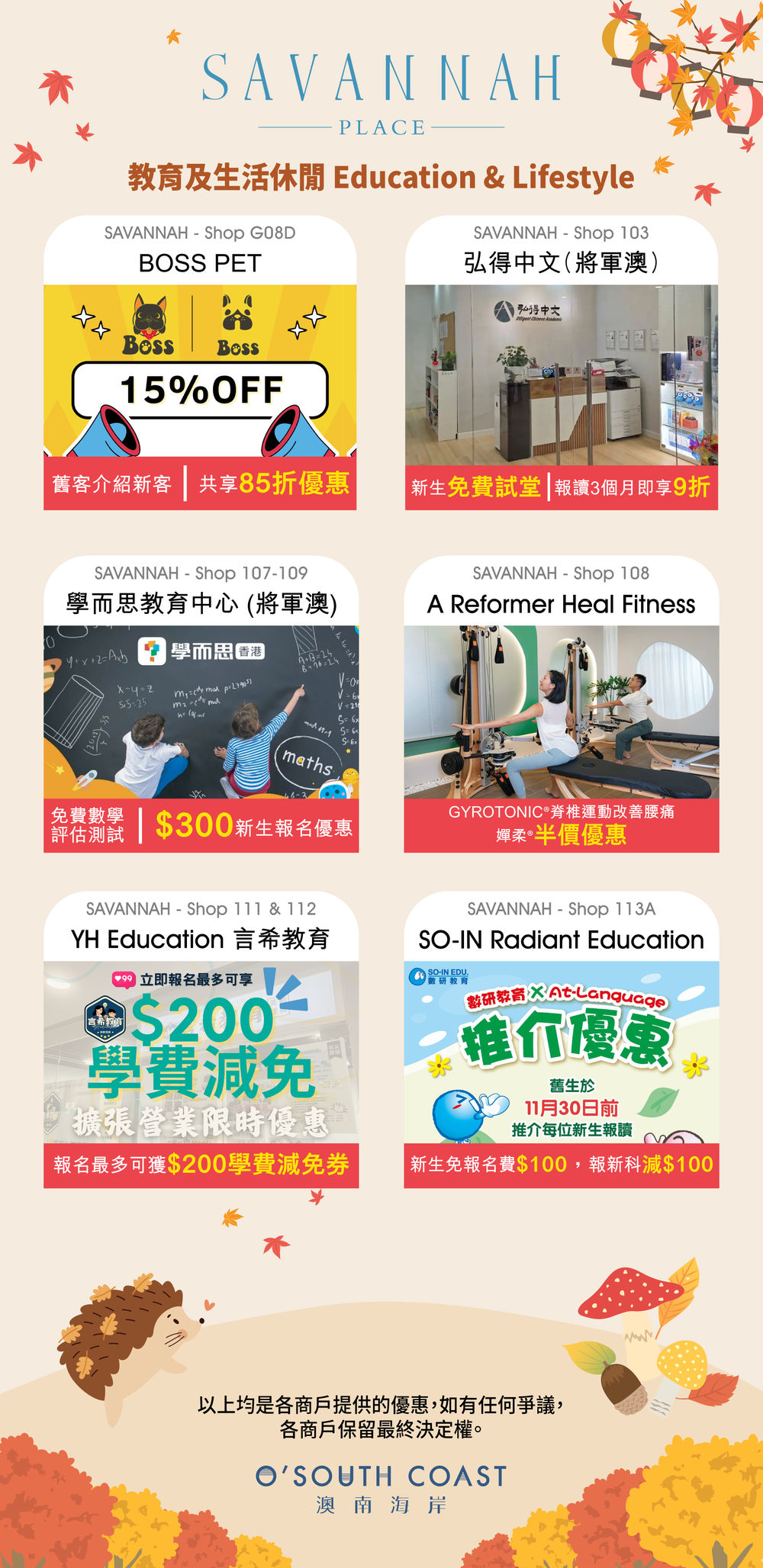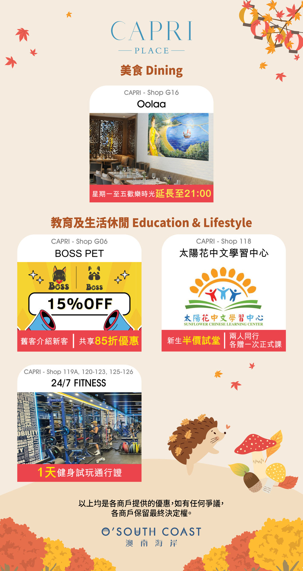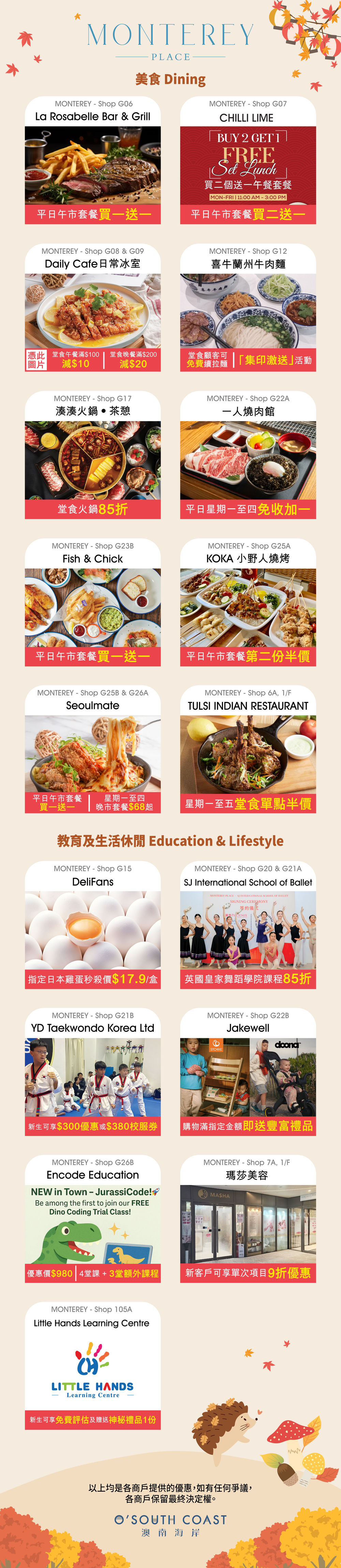 ***所有優惠受條款及細則約束,詳情請向商戶查詢。優惠由各商戶提供並擁有最終決定權。享用優惠前,請先向職員查詢及出示此信息。優惠如有更改,恕不另行通知。***