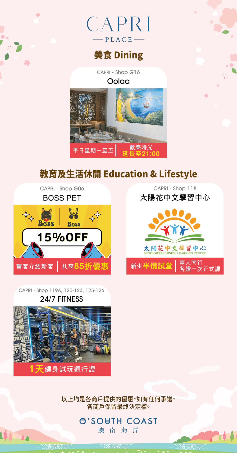 地址: 澳南海岸 Capri Place 地下 G16號舖