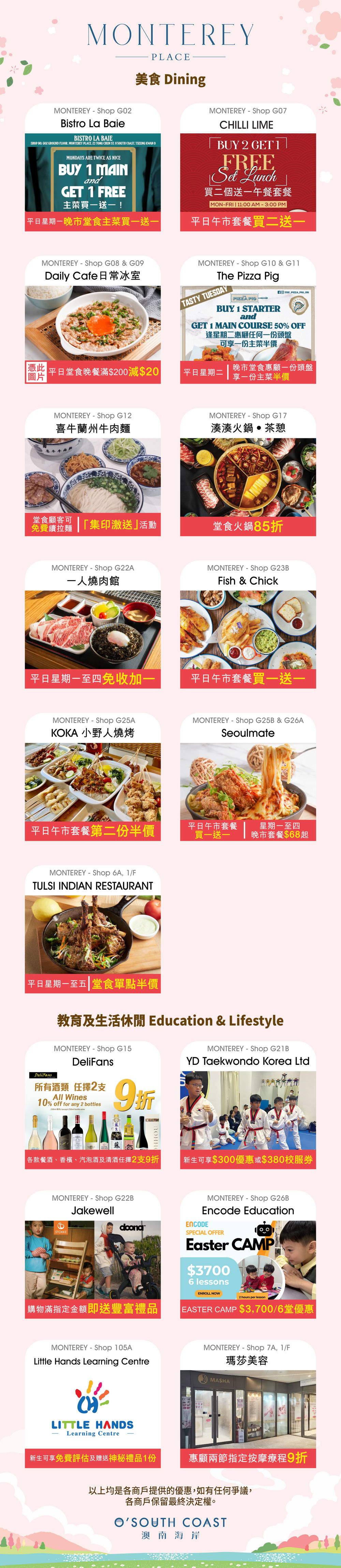 - 所有優惠受條款及細則約束,詳情請向商戶查詢。